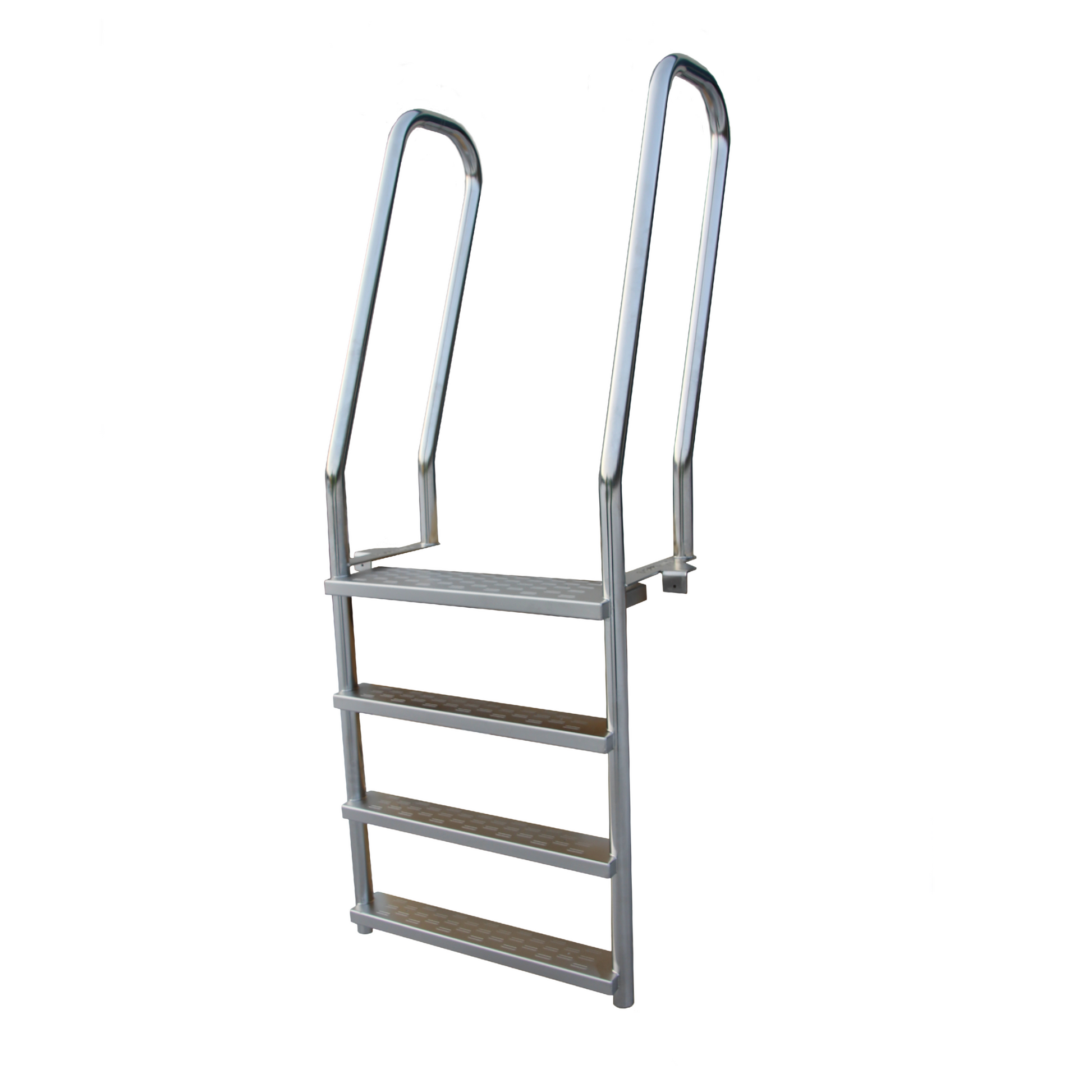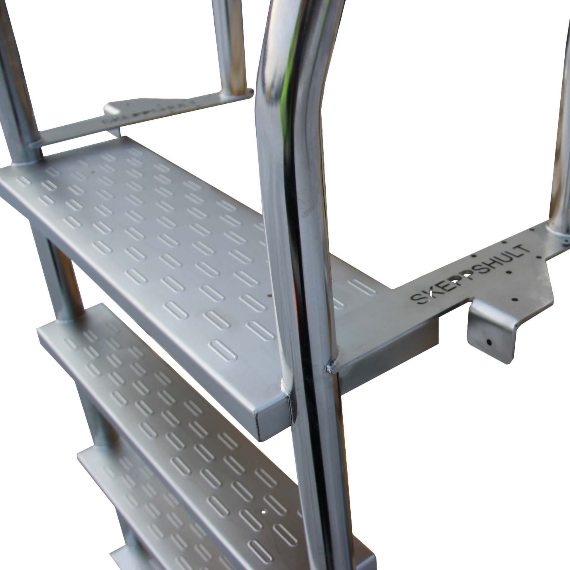 Den rostfria konstruktionen tål tuffa miljöer och lämpar sig perfekt för både söt- och saltvatten. Den halkskyddade ytan på stegen ger ökad säkerhet vid användning – även när stegen är blöt.