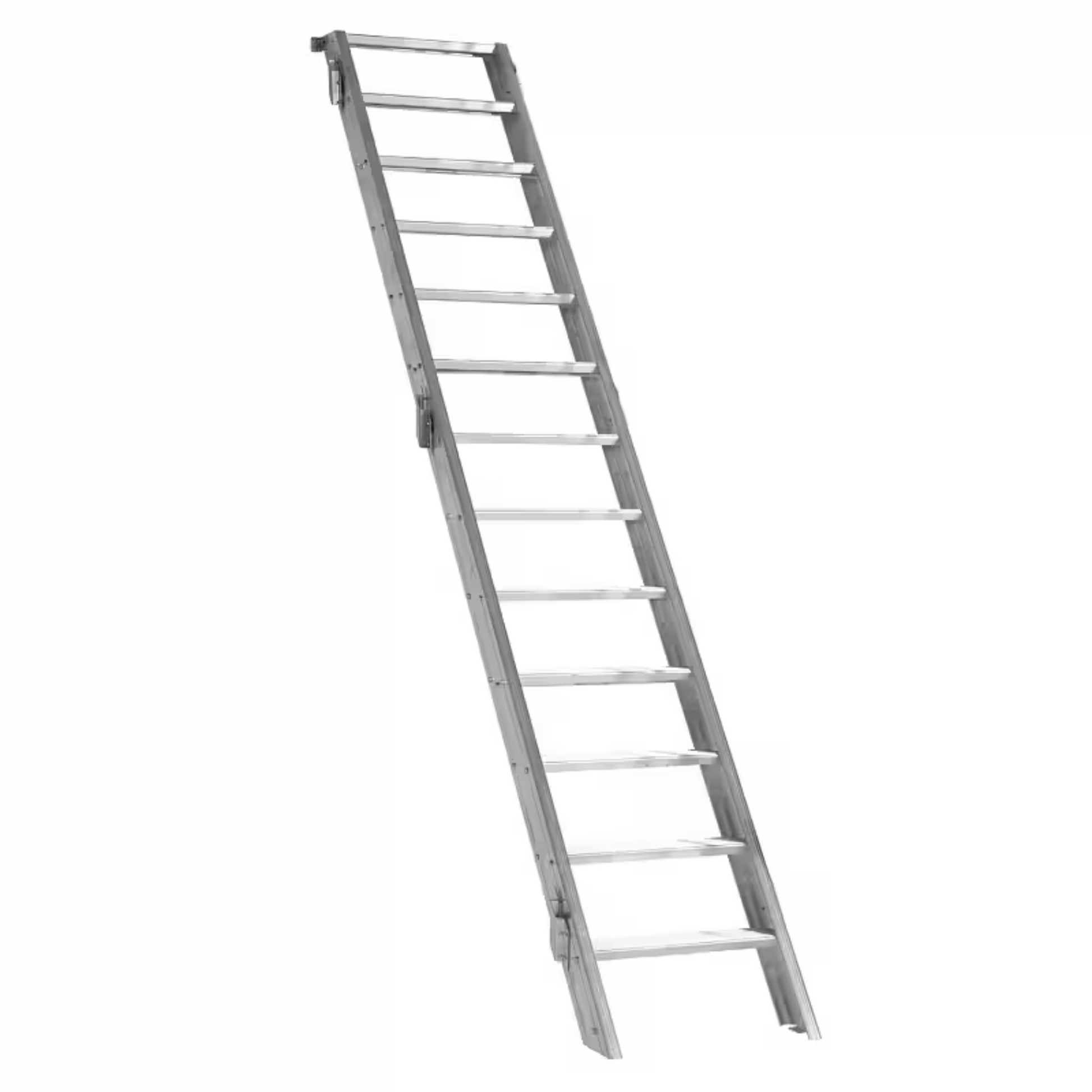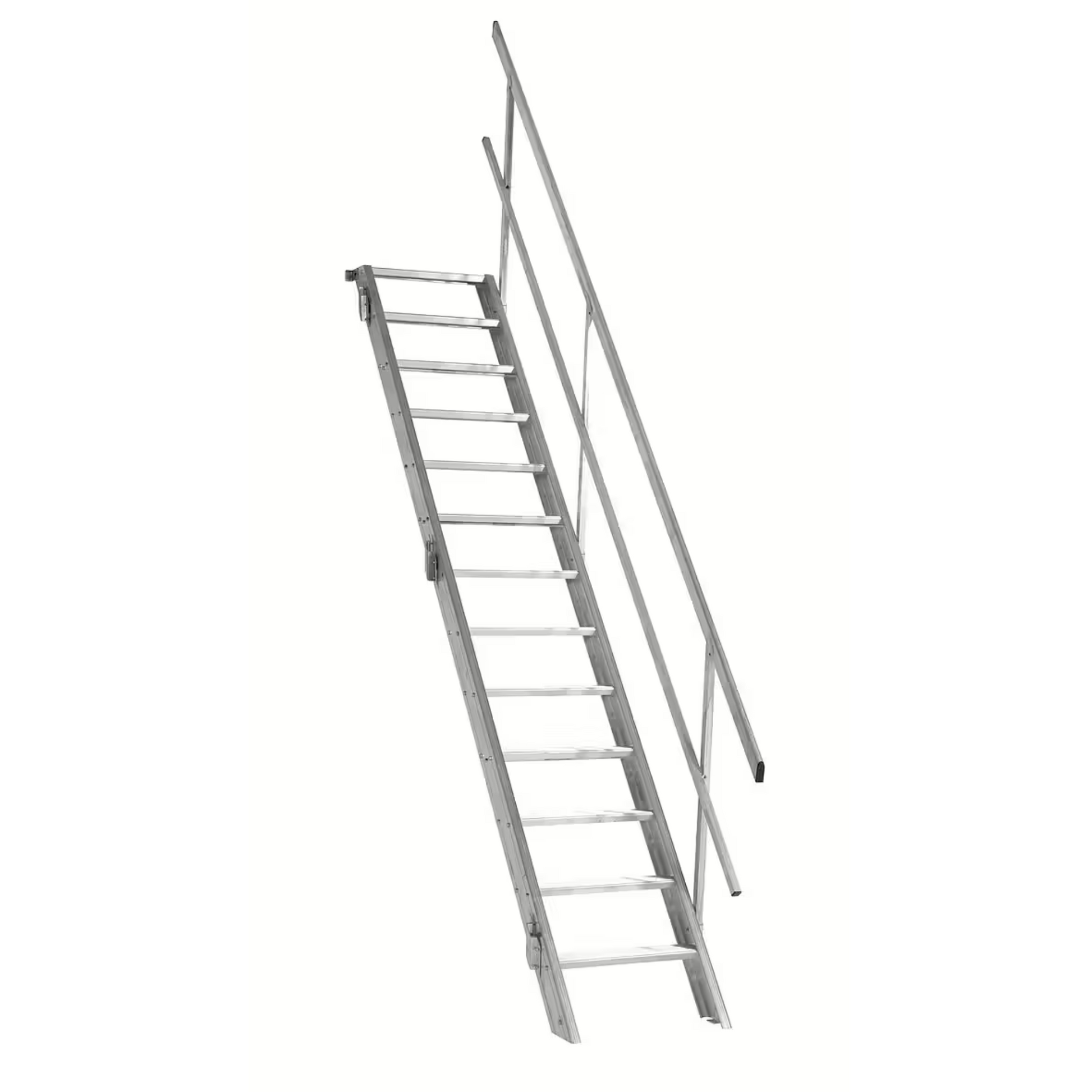 En smidig och stabil byggtrappa tillverkad i lätt aluminium, perfekt för tillfälliga tillträden mellan våningsplan. Trappan är enkel att montera, demontera och förflytta, vilket gör den idealisk för byggarbetsplatser och renoveringsprojekt.