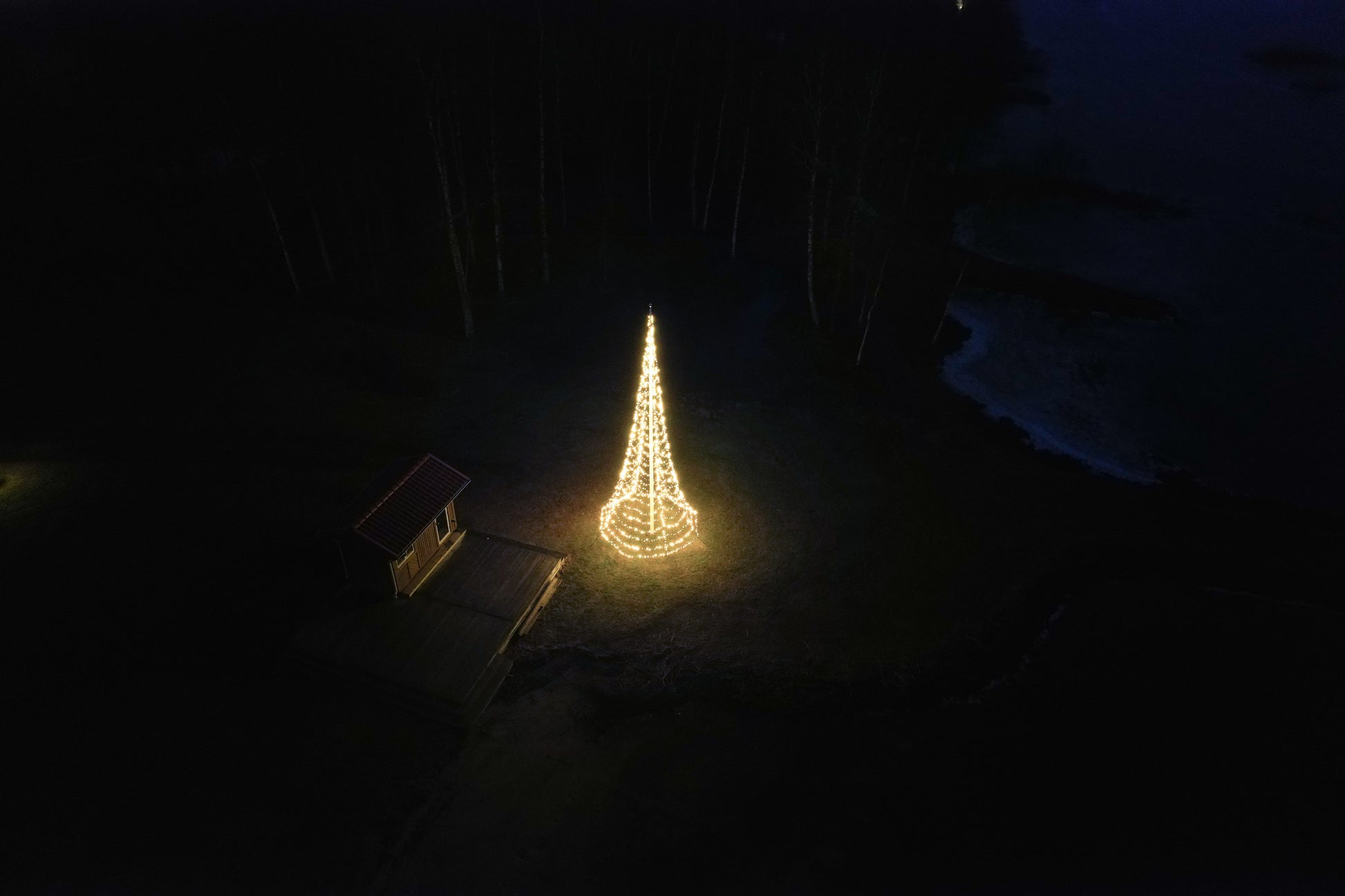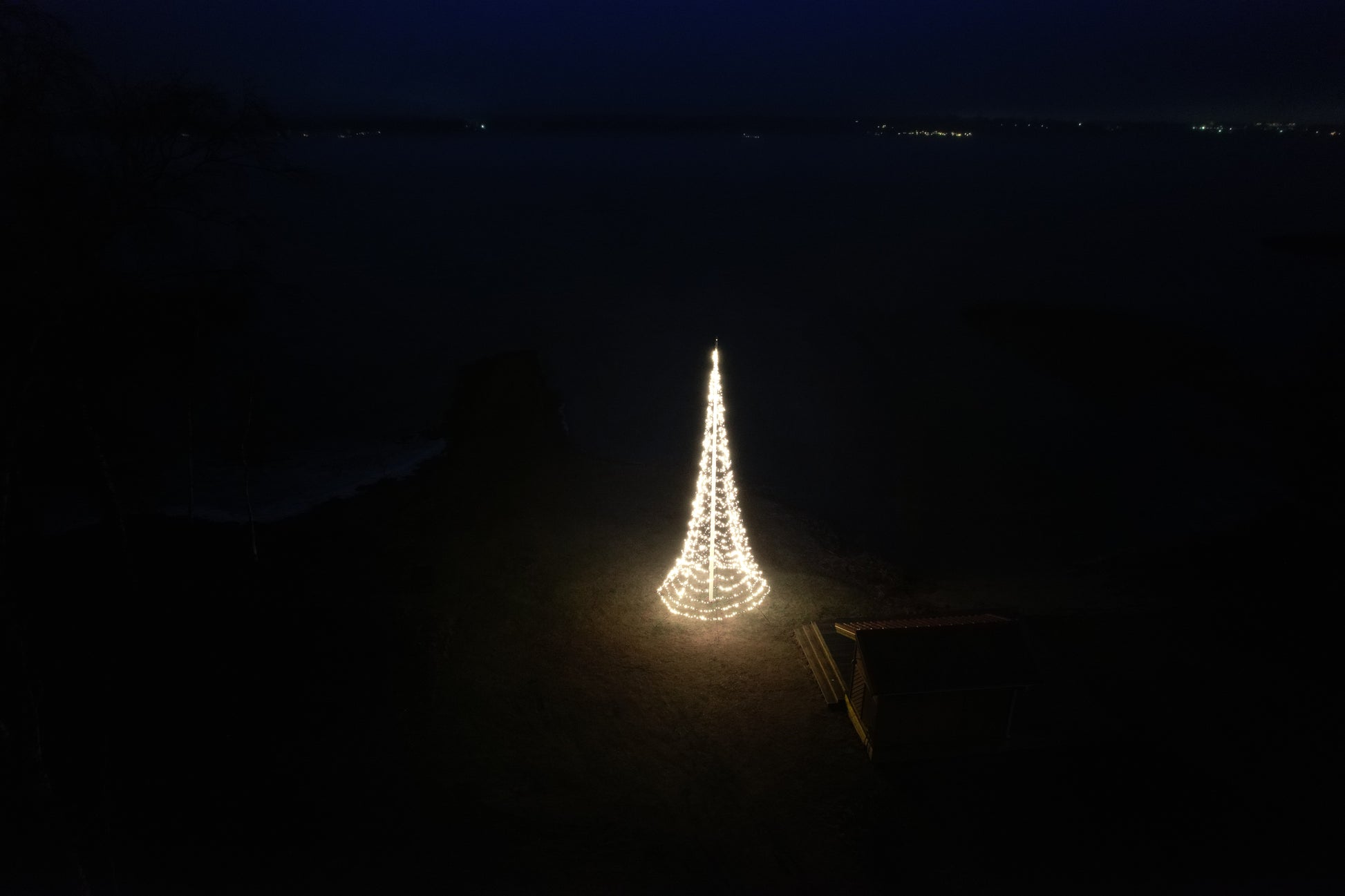 Ge din flaggstång ett stämningsfullt lyft i vintermörkret med Glimma Flaggstångsbelysning – en exklusiv och energieffektiv ljusdekoration designad för att skapa en imponerande ljuseffekt. Med varmvita LED-lampor i ett elegant mönster blir flaggstången en gnistrande julgran som sprider ljus och glädje över hela trädgården.