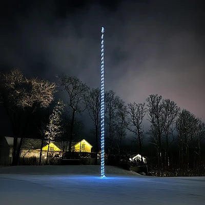 Ge din flaggstång nytt liv med Flaggstångsslinga Glimma – en 20 meter lång RGBWW LED-slinga som enkelt hissas upp via flagglinan och snurras runt masten för en spektakulär ljuseffekt. Med hela 400 RGBWW LED-lampor får du möjligheten att skapa både varmvita och färgsprakande ljusbilder, perfekt anpassade för såväl jul som midsommar, födelsedagsfiranden eller andra festligheter.