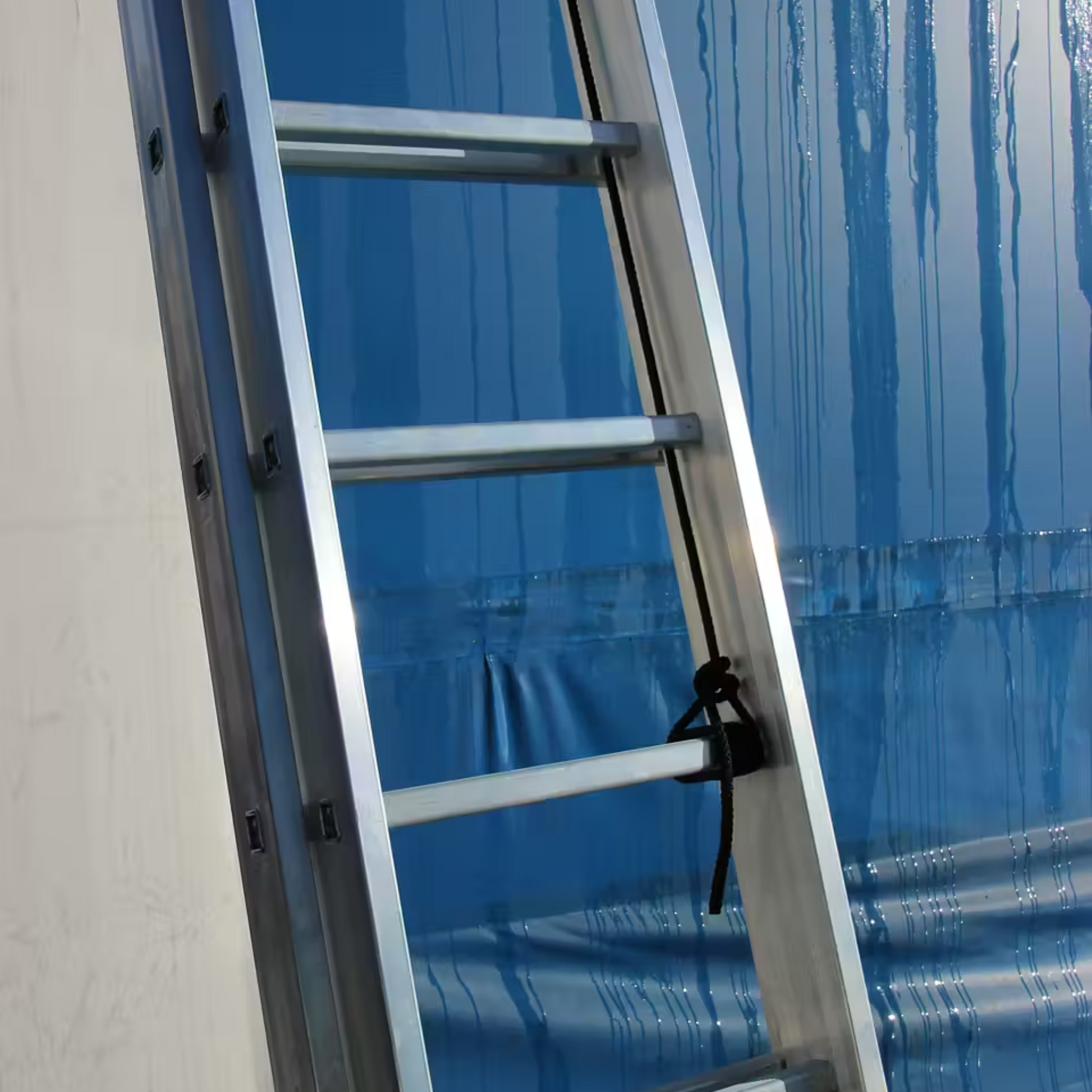 Försedd med topphjul, ”klättrar” stegen längs väggen utan att skada ytan, vilket gör den idealisk för både professionellt bruk och arbete hemma. Repet är monterat på utsidan av stegen för att hålla klättringsytan fri och säker.
