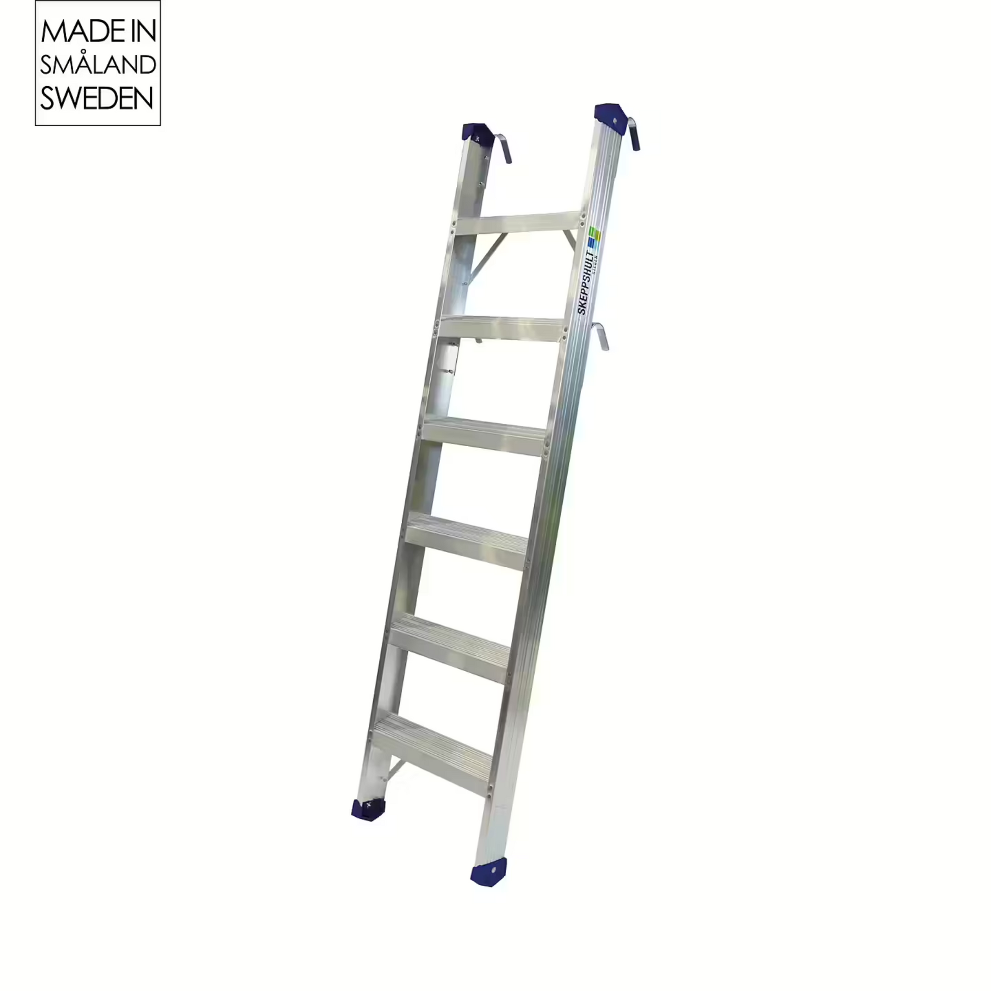 Lagerstegen är en stabil och mångsidig stege som lämpar sig utmärkt för användning vid pallställ, lagerhyllor och andra arbetsmiljöer där höjdåtkomst krävs. Med sin robusta konstruktion och smarta funktioner är den ett pålitligt hjälpmedel i lager, butik eller industri.