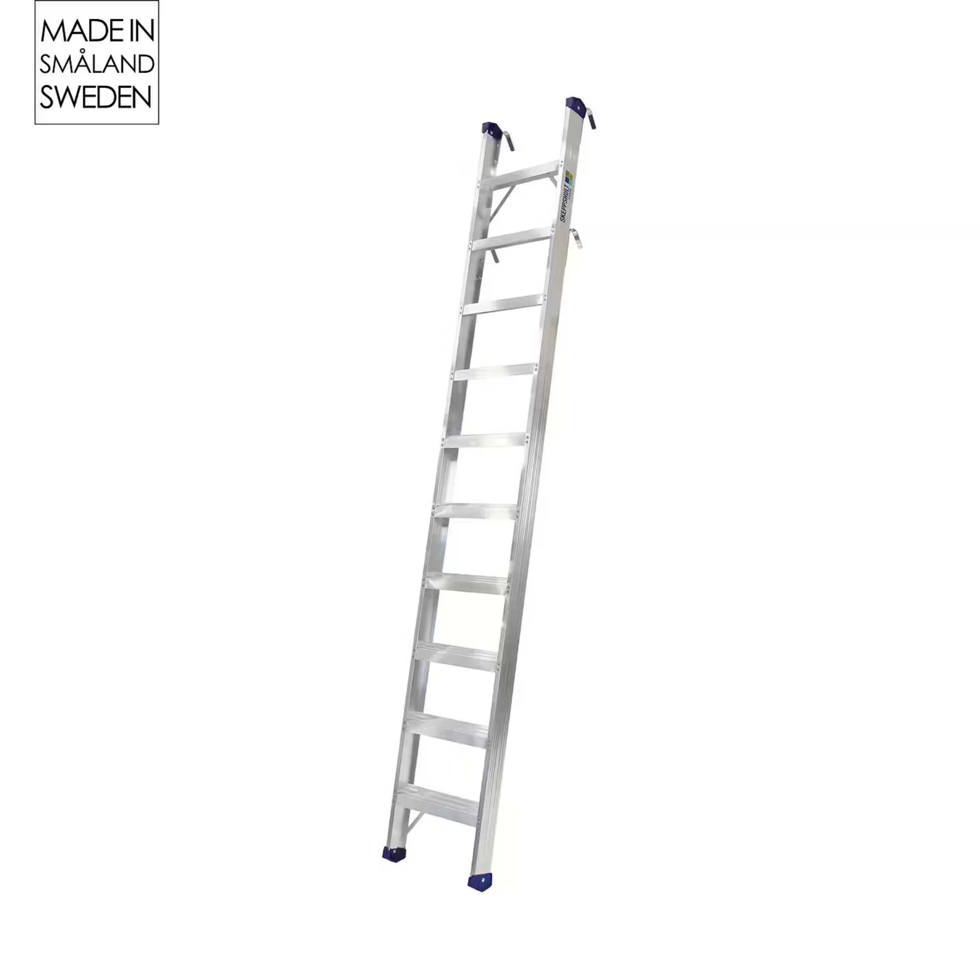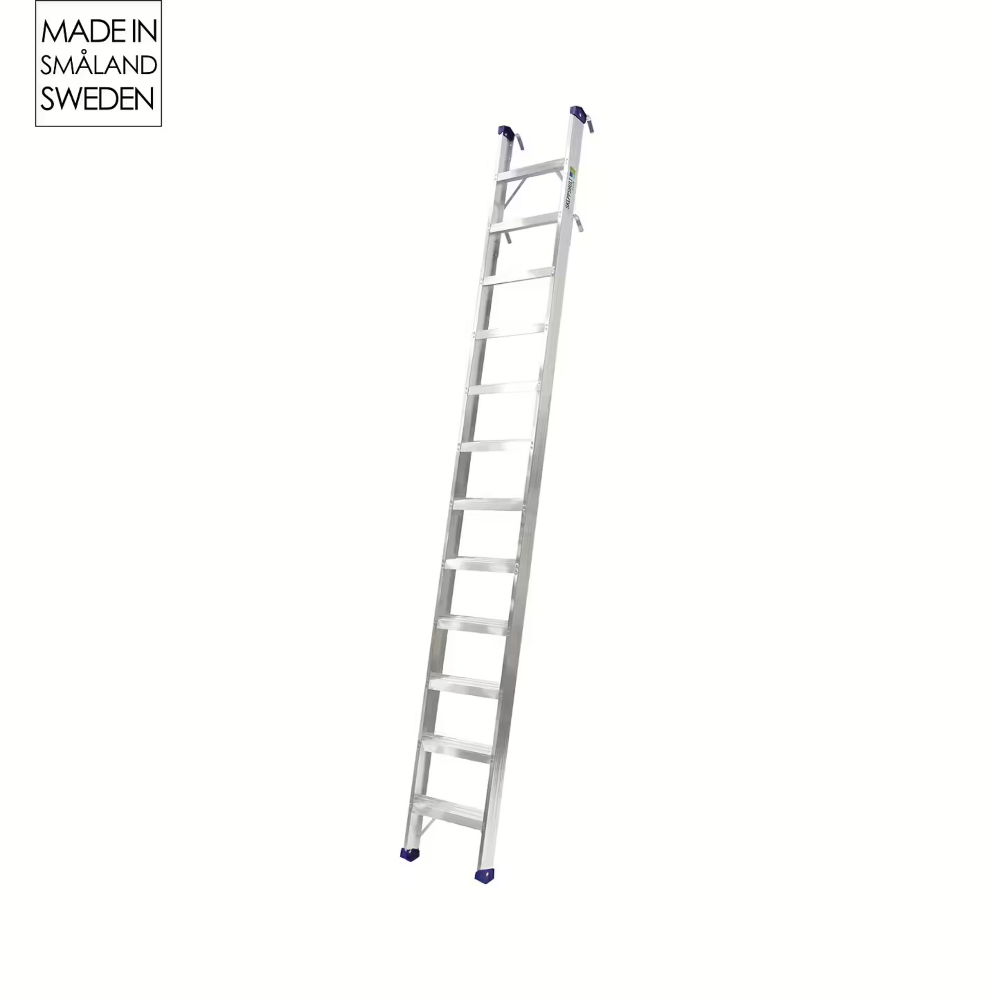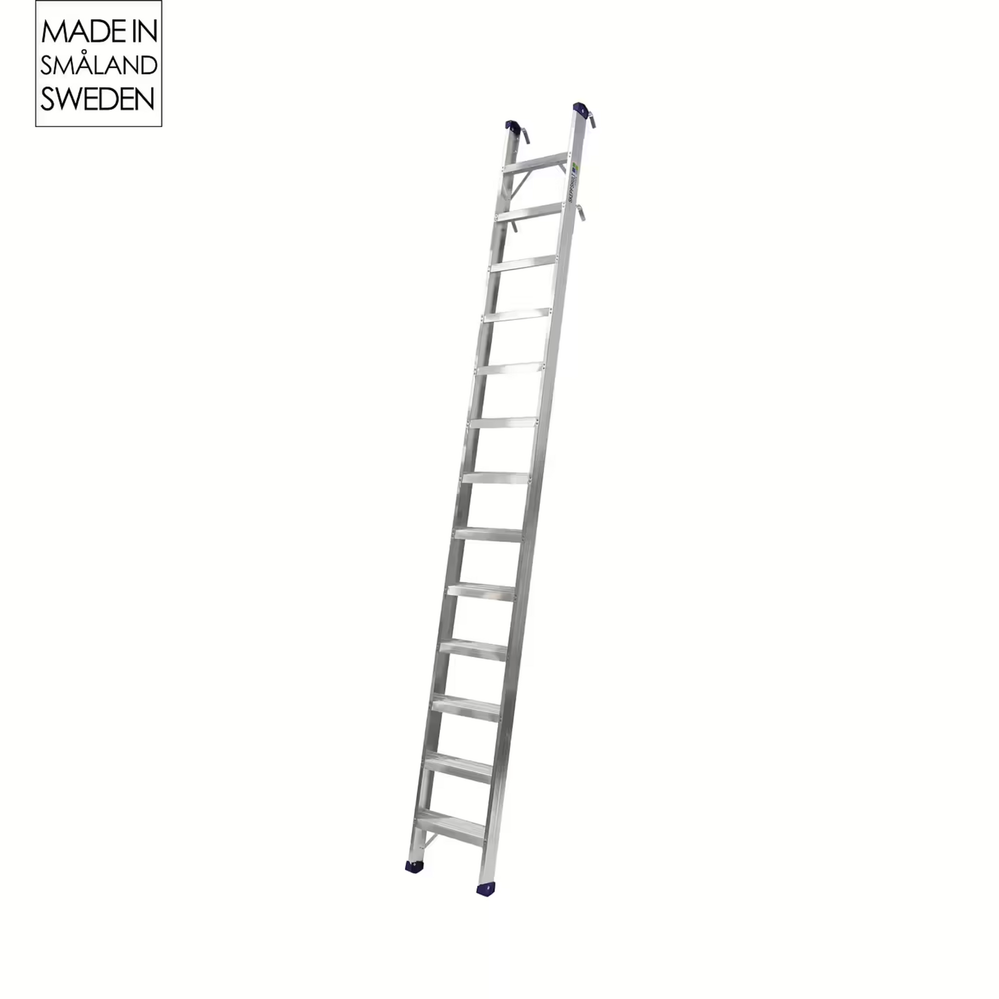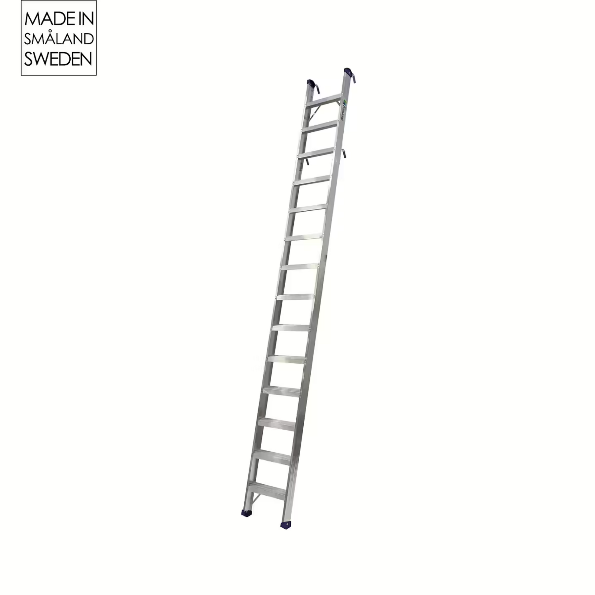 För ökad säkerhet kan lagerstegen kompletteras med handledare, och de kraftiga glidskydden tillsammans med toppmonterade krokar förhindrar att stegen glider vid användning. Tvärstag både upptill och nertill bidrar till ökad stabilitet.