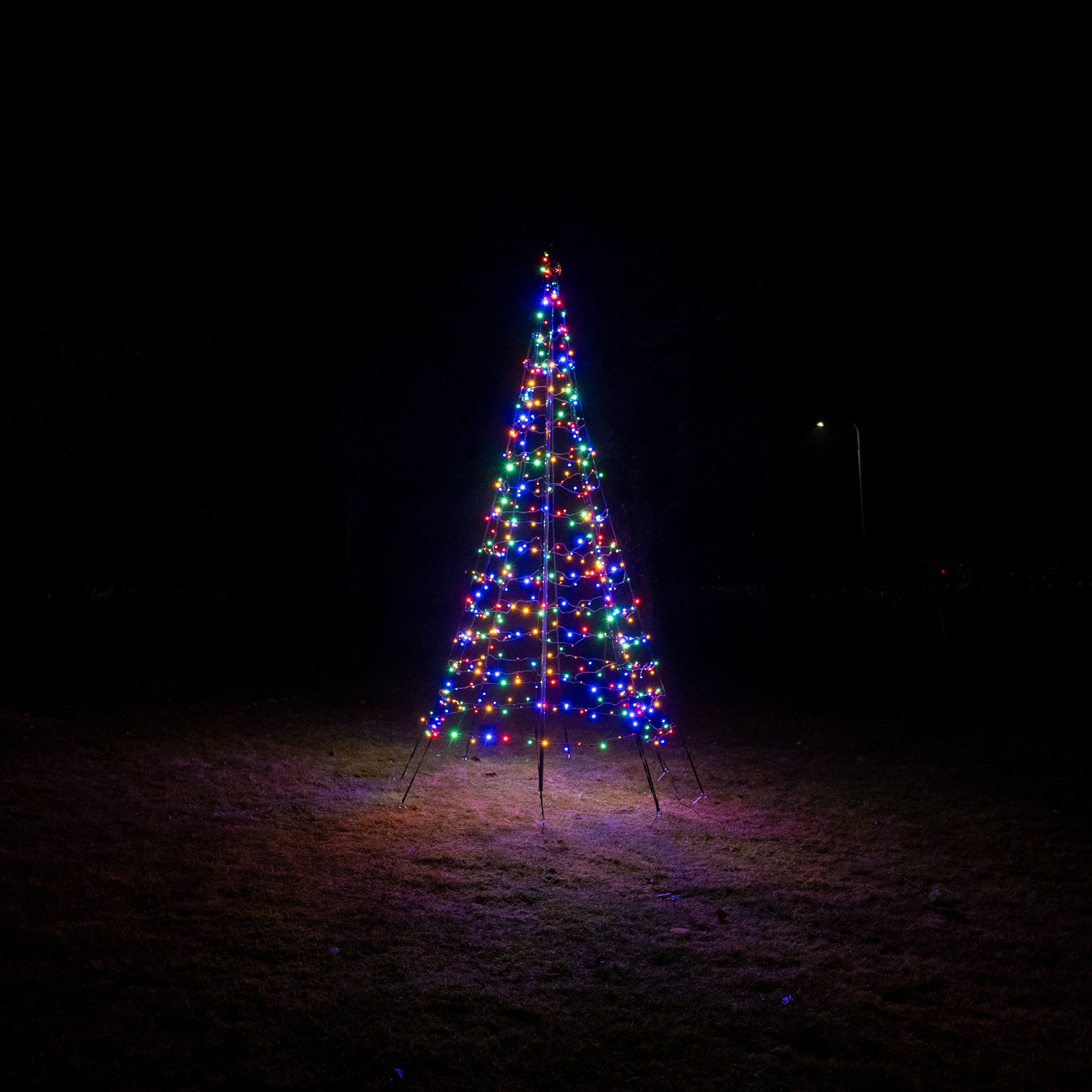 Välj mellan tre höjder: 2, 3 eller 4 meter. Varje gran är utrustad med 300, 480 eller 640 LED-lampor som monteras i ett harmoniskt och tätt mönster för bästa ljusspridning. En stadig monteringsstolpe medföljer för enkel installation på alla typer av underlag – gräs, sand eller plattor.
