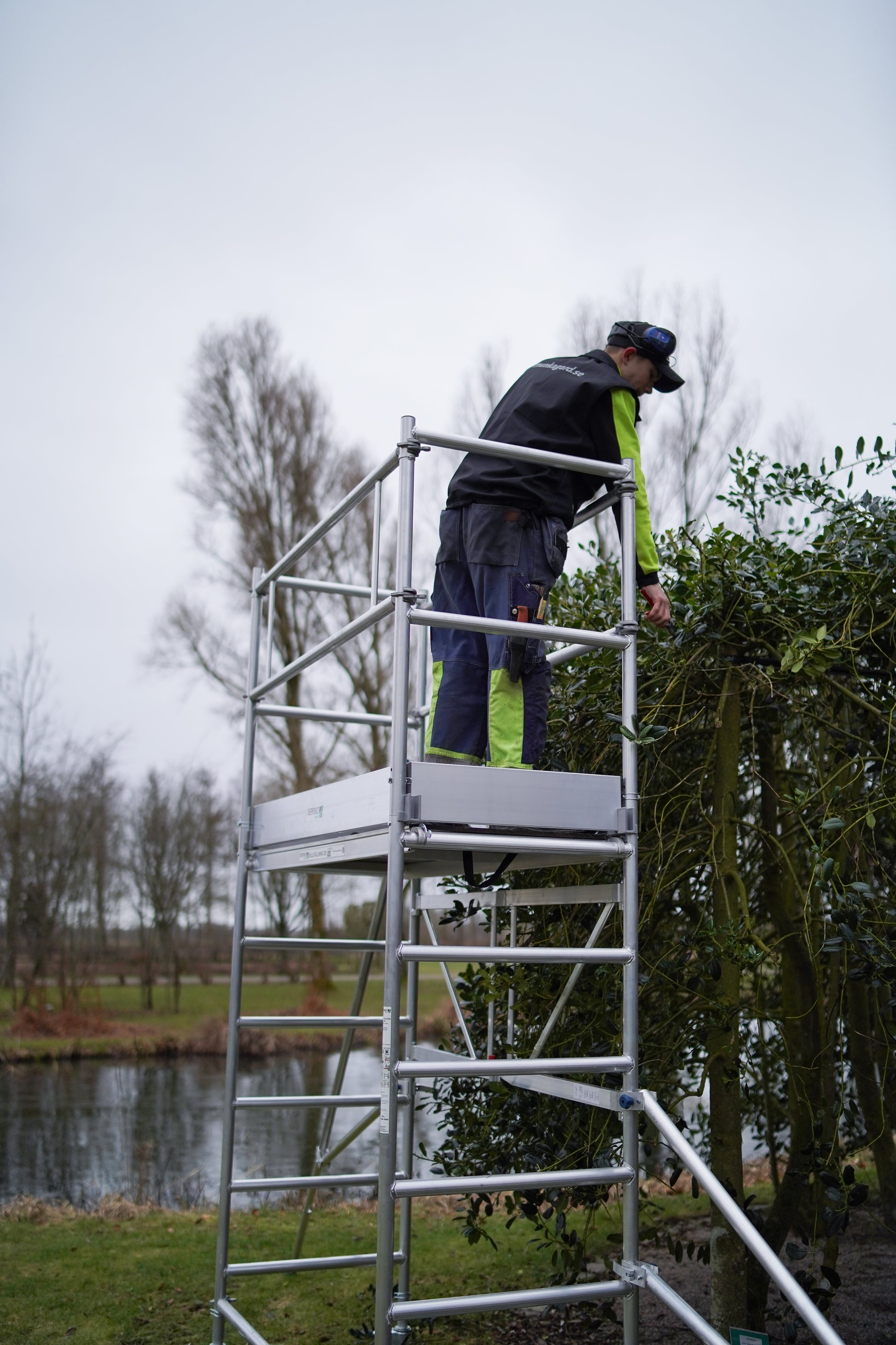 Rullställning 282 Standard kan användas för ditt projekt oavsett om det är inomhus eller utomhus. Ställningens plattform är 1600 x 600 mm, och ställningen levereras med Ø 100 mm hjul som standard. Rullställning 282 standard är smidig där utrymmet är begränsat.
