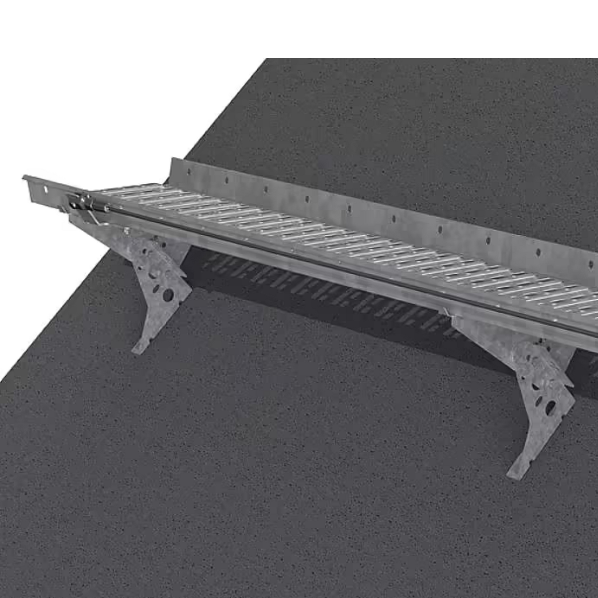 Takbryggan tillverkas i varmförzinkad stål. En lätt och stabil takbrygga med utomordentligt grepp under alla förhållanden. Produkten är framtagen i enlighet med SS-EN 516 och är godkänd för infästning av livlina. Därav behövs inget nockräcke på den sträcka där den är monterad. Takbryggan monteras enkelt och smidigt genom förgängade hål och överlappsskarv. Fästena monteras med maximalt 1200mm ifrån varandra.