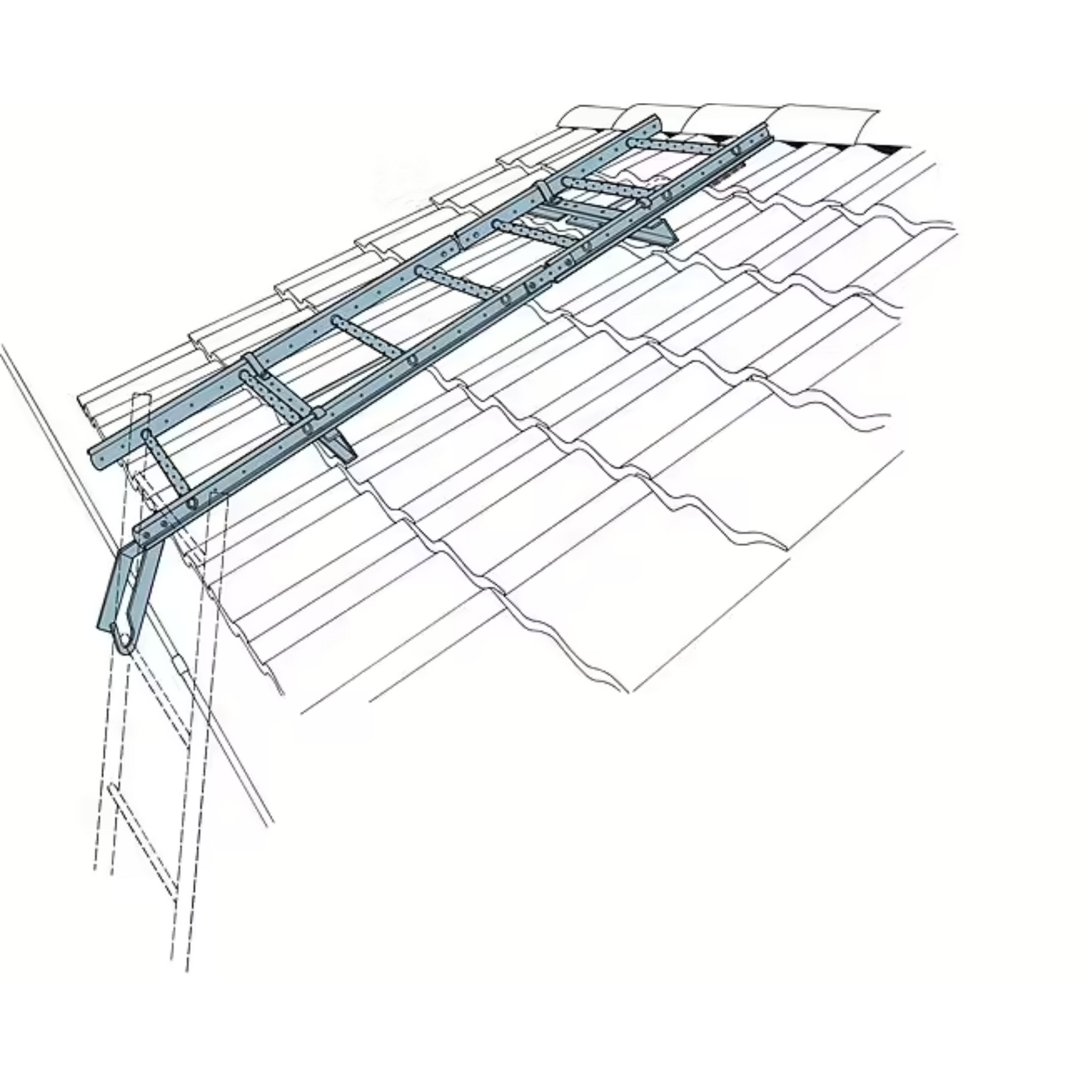 Takstege stål proffs tillverkas av galvaniserat stål vilket ger stegen en utmärkt säkerhet. Stegens vangstycken är av rullformad U-profil. Stegpinnarna är profilerade för att minska halkrisken och är stukade både på in- och utsida för dubbel säkerhet. Godkänd för infästning av livlina.