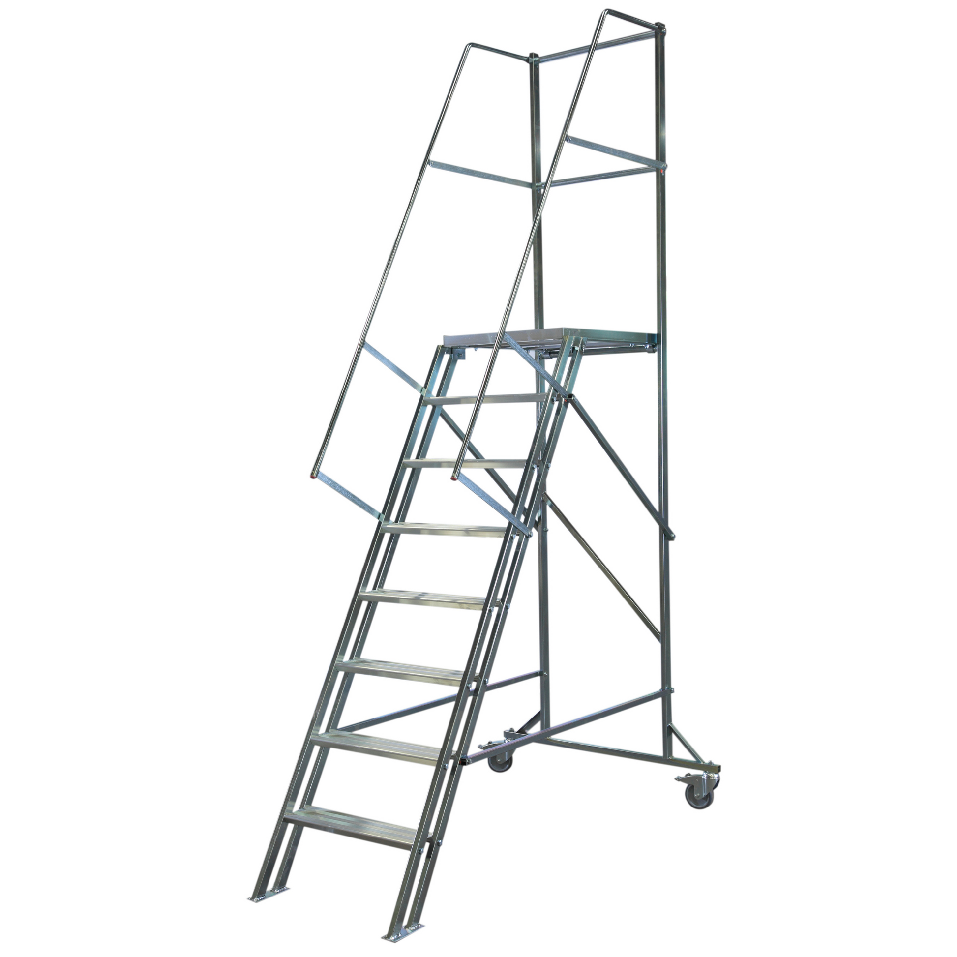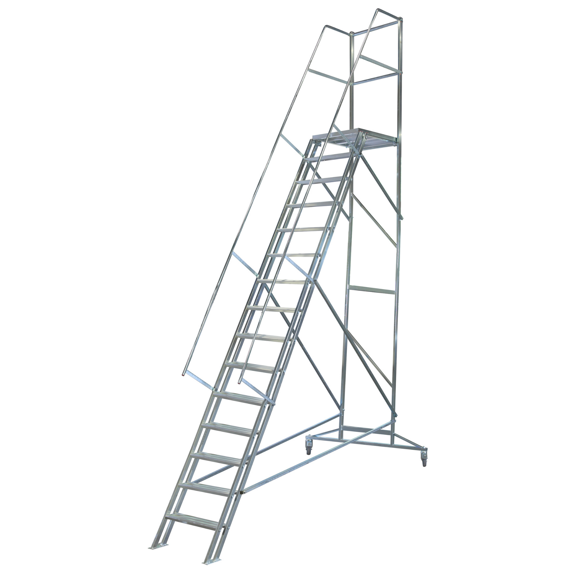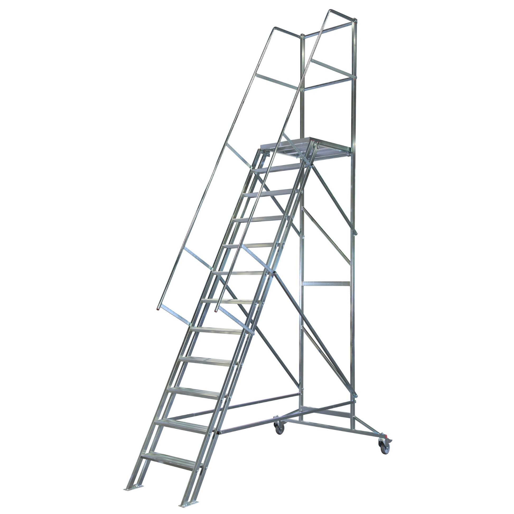 ✅ Stabil och säker: Trappdelen har en släpsko för ökad stabilitet, och bakstaget är utrustat med lås samt roterbara hjul (100 mm) för smidig förflyttning.