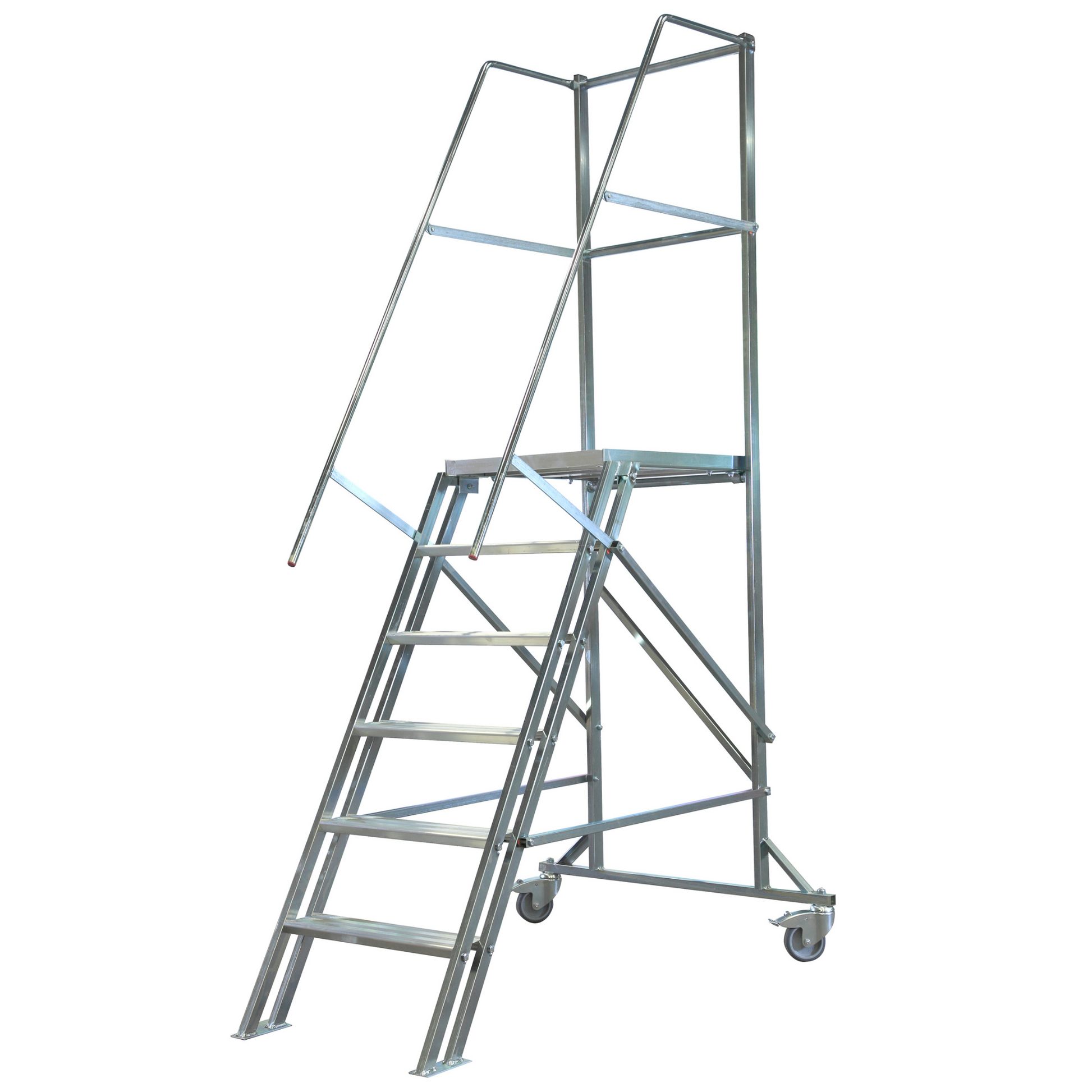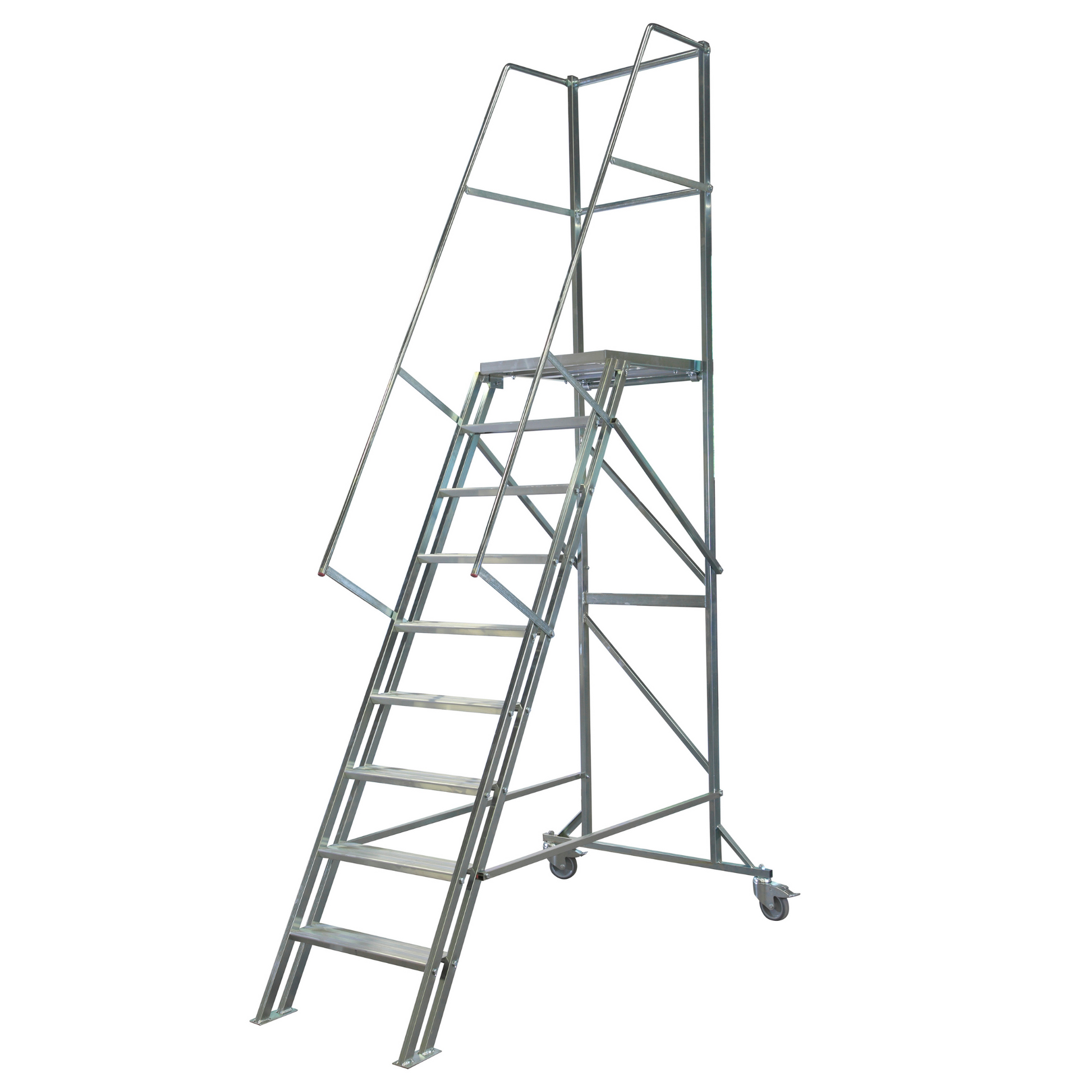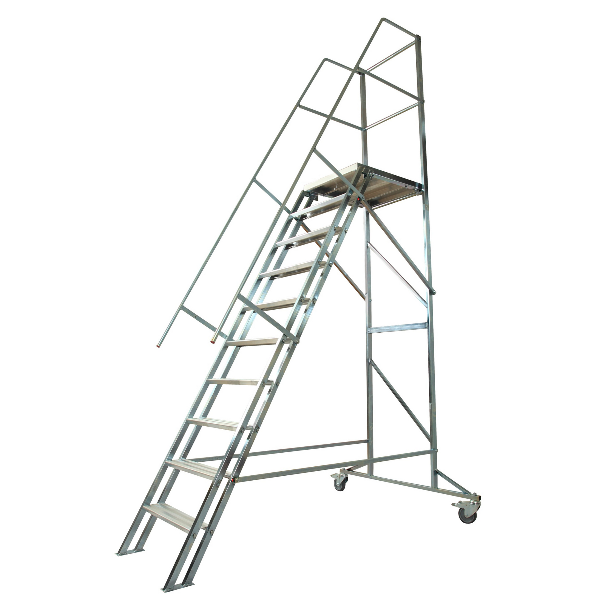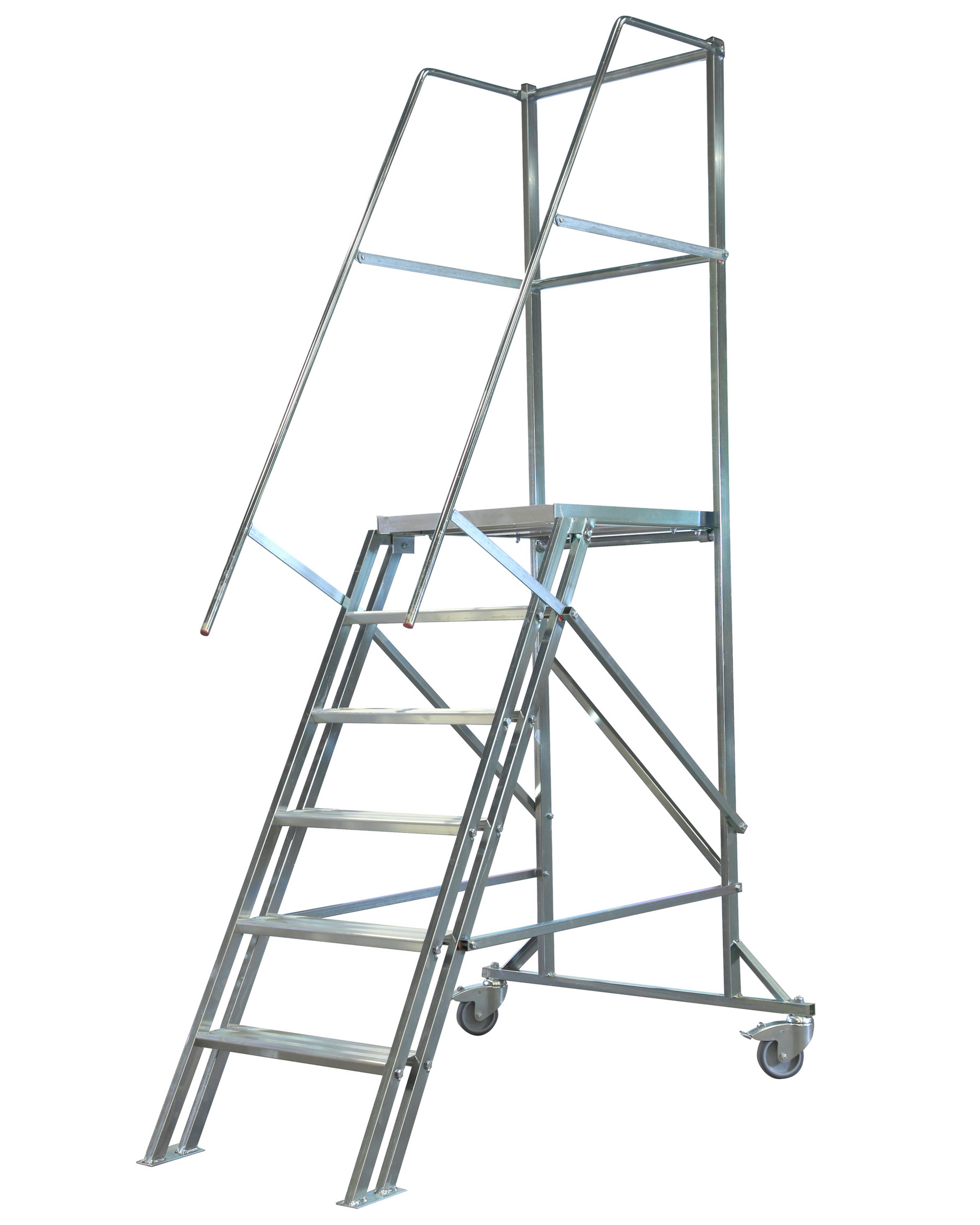 ✅ Stabil och säker: Trappdelen har en släpsko för ökad stabilitet, och bakstaget är utrustat med lås samt roterbara hjul (100 mm) för smidig förflyttning.
