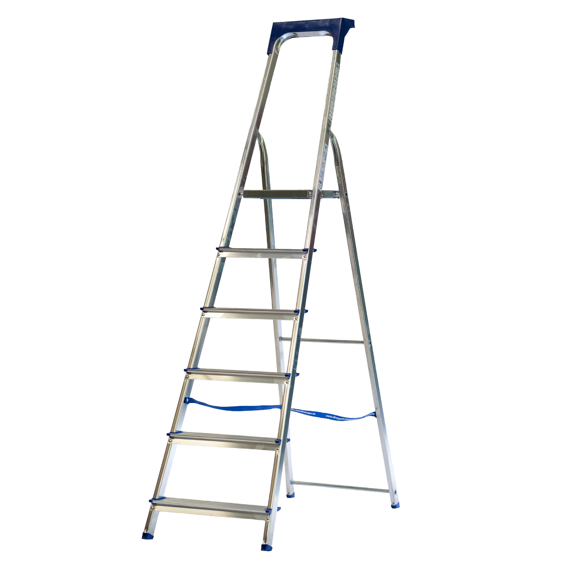 Letar du efter en praktisk och smidig trappstege för hemmet? Denna hushållstrappstege i aluminium är ett utmärkt val för enklare arbetsuppgifter inomhus – som att putsa fönster, byta glödlampor eller nå högsta hyllan i garderoben.