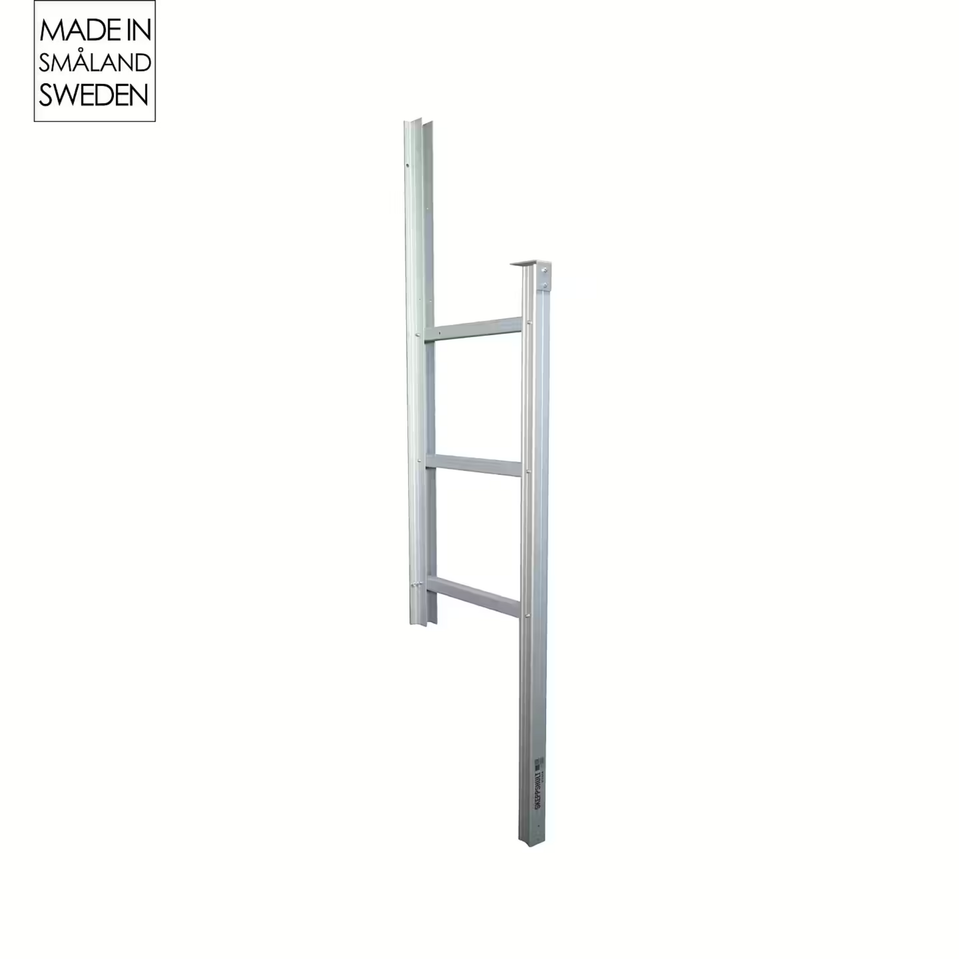 Vår nya kraftiga och stabila utrymningsstege är tillverkad i hög kvalitet i vår egen fabrik i Skeppshult – en pålitlig lösning för trygg evakuering från byggnader i nödsituationer. Den är designad för att monteras infällt mot fasaden, där den endast syns som en smal, diskret list – tills den behövs.