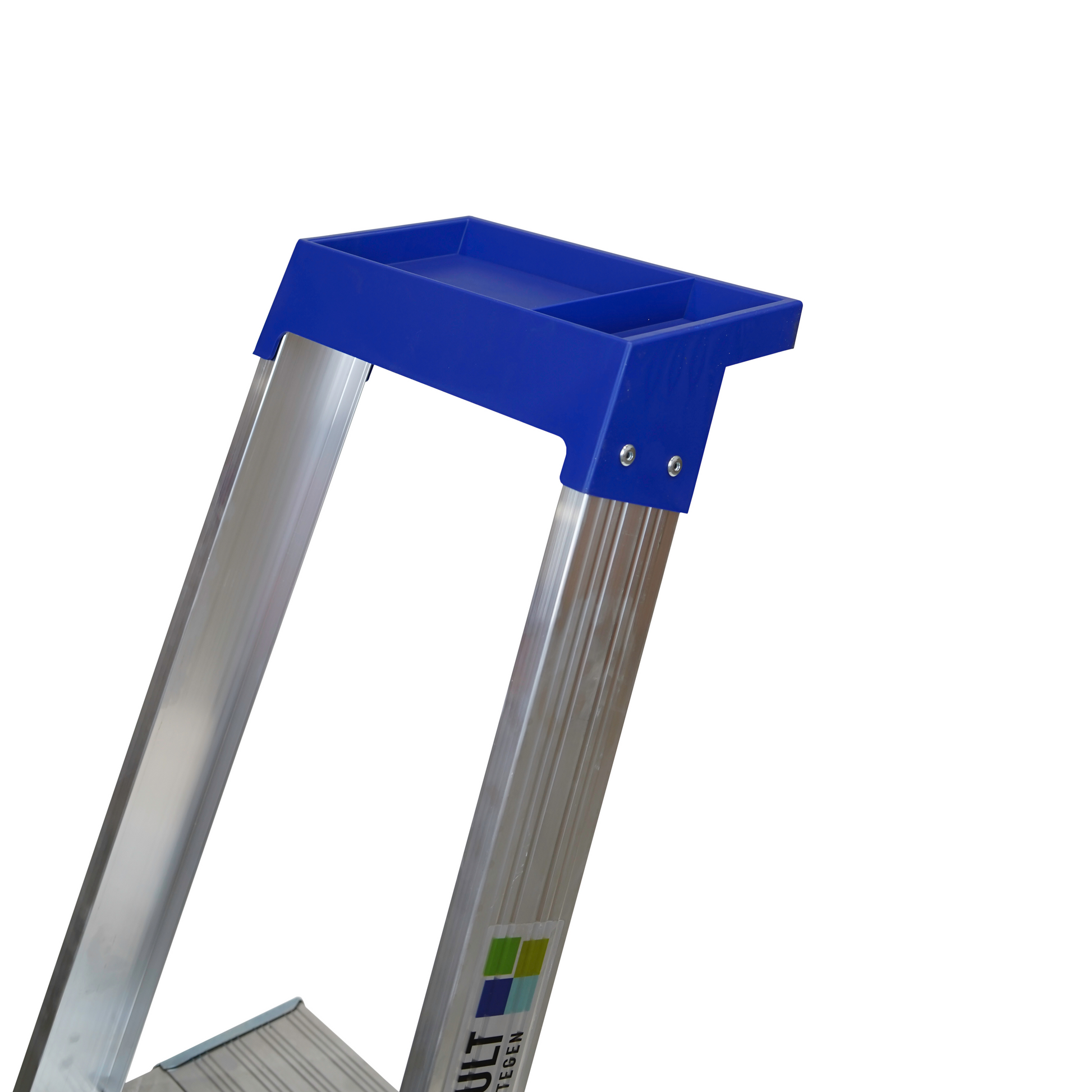 Praktisk och slitstark verktygshylla i blå färg, designad för att underlätta ditt arbete på höjd. Håll ordning på dina verktyg direkt på stegen – smidigt, säkert och effektivt.